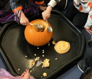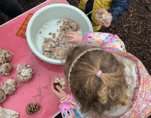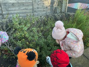 We are fortunate to have a wonderful outdoor space and we spend lots of time exploring the world around us, whatever the weather! We ask that children have a pair of wellies that are kept in school for these occasions.
